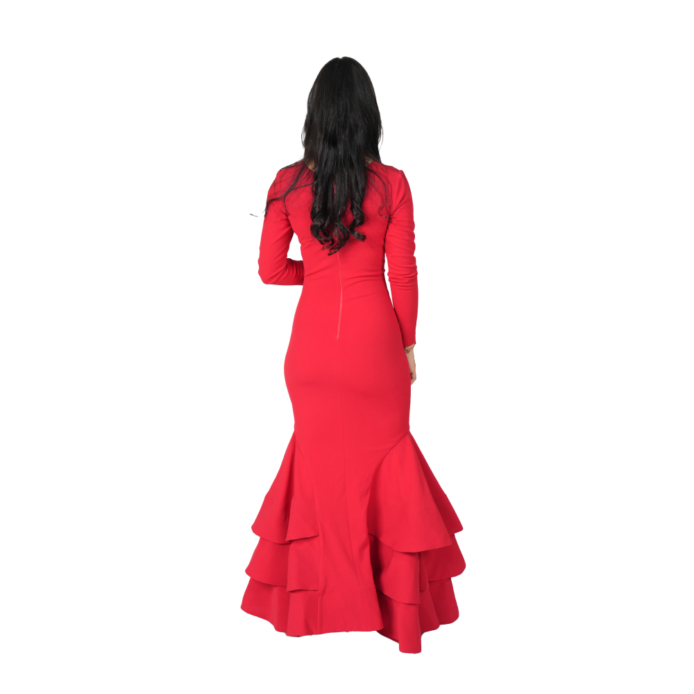 - طبقات متعددة عند التنورة: تضفي على الفستان شكلاً مميزًا وحجمًا رائعًا، مما يجعله جذابًا عند الحركة.