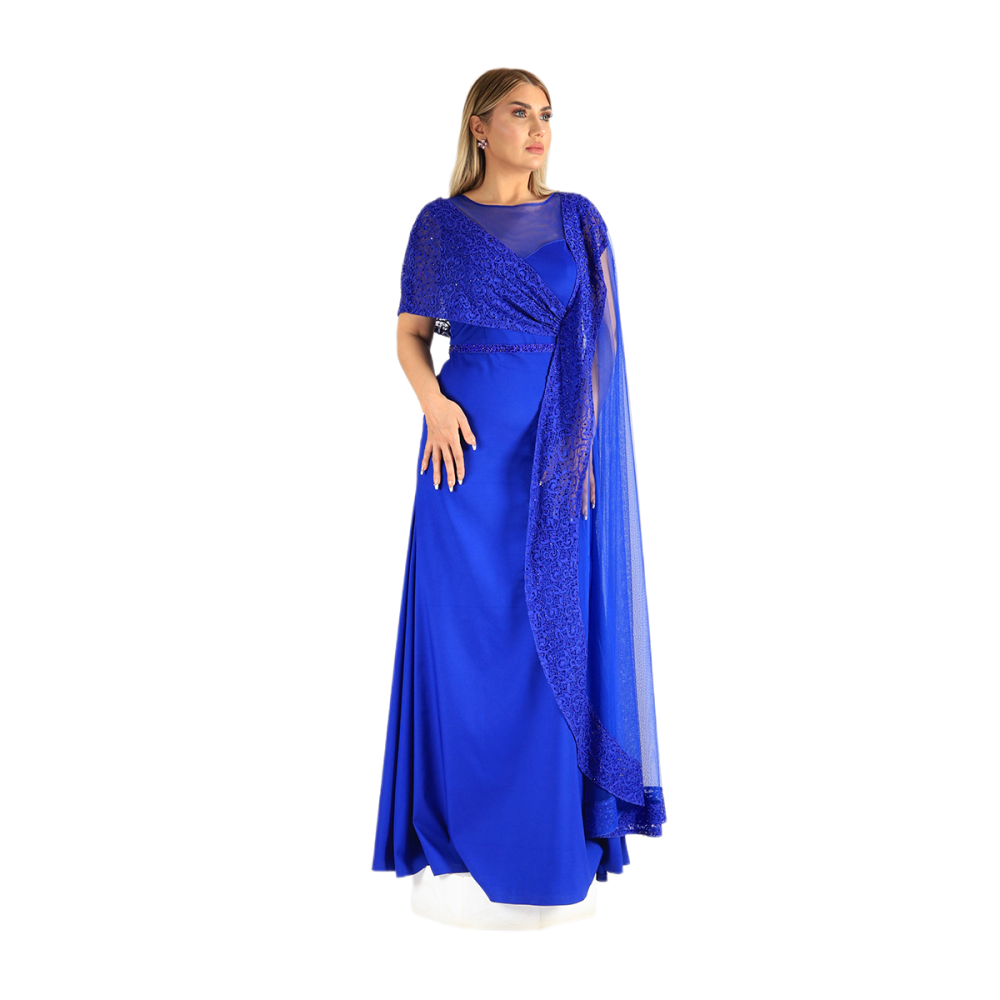• التفاصيل:شال من الدانتيل: مُزخرف بالتطريز الدقيق الذي يضيف جمالية فريدة للفستان.
