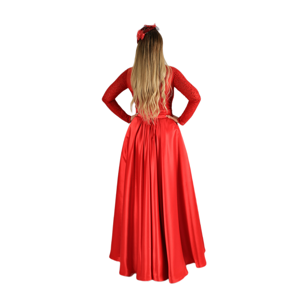 - قصّة واسعة من الأسفل: تمنح الفستان انسيابية وأناقة.