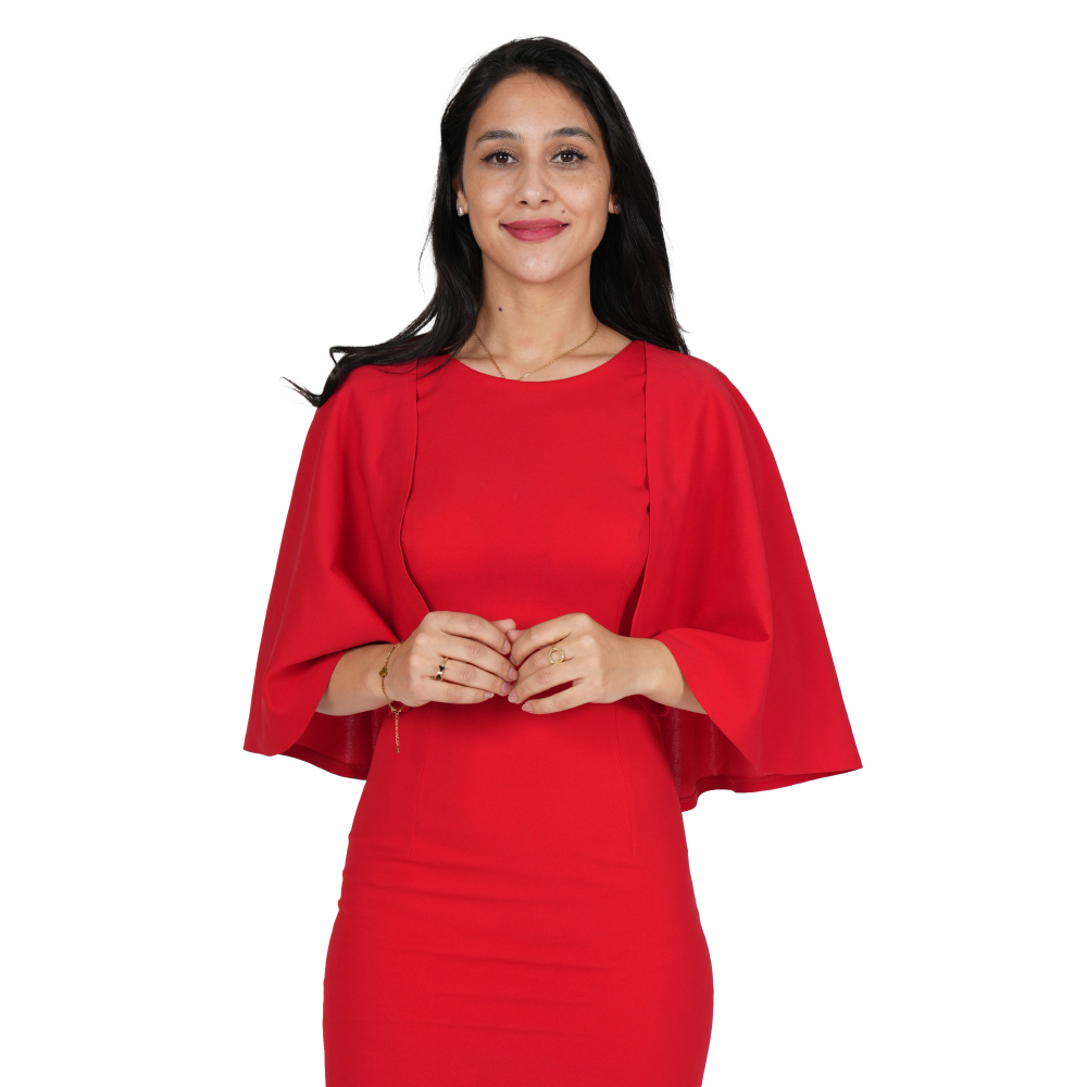 نوع الأكمام: أكمام قصيرة مزينة بأجنحة واسعة تنساب برقة، لتعكس طابعًا ملكيًا مميزًا.