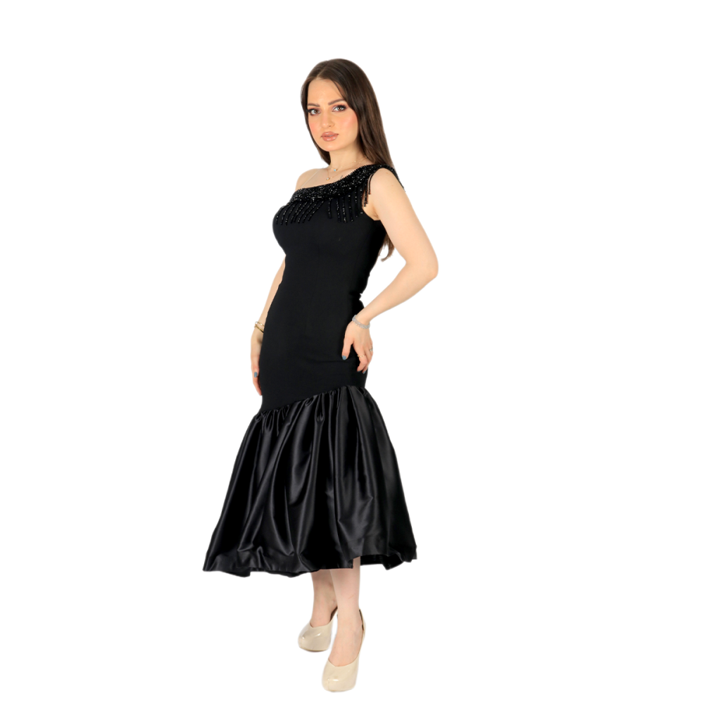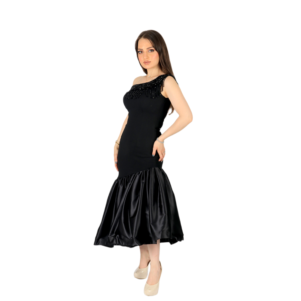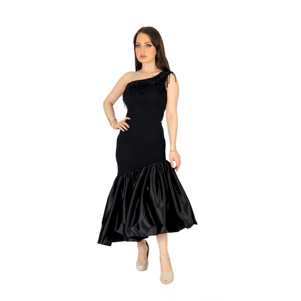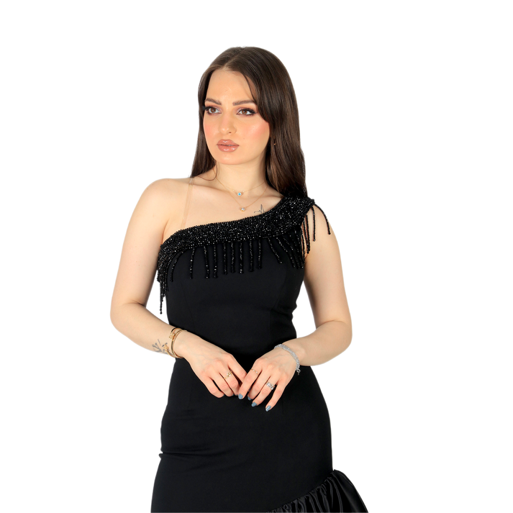 • الرقبة: على شكل كتف واحد من الخرز، تضفي لمسة من الأناقة والجاذبية.