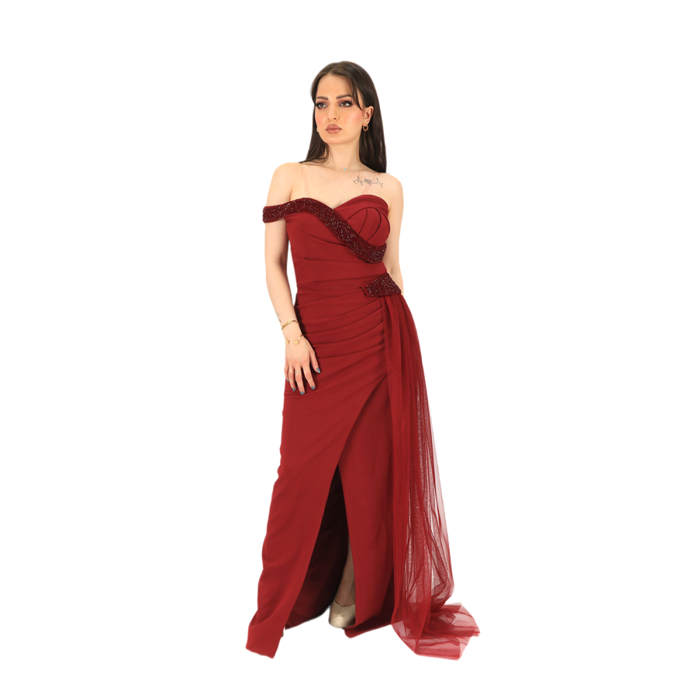 هذا الفستان هو خيار مثالي لمن تبحث عن إطلالة استثنائية تُظهر شخصيتها العصرية والجريئة. تصميمه الأنيق وتفاصيله الدقيقة تضمن لكِ إطلالة لا تُنسى تضفي لمسة من الفخامة على مناسبتك الخاصة.